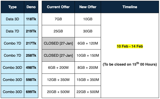 - GrameenPhone Bangladesh From 10 Feb 2026 00:00 To 14 Feb 2026 23:59 (GMT+06:00:00)