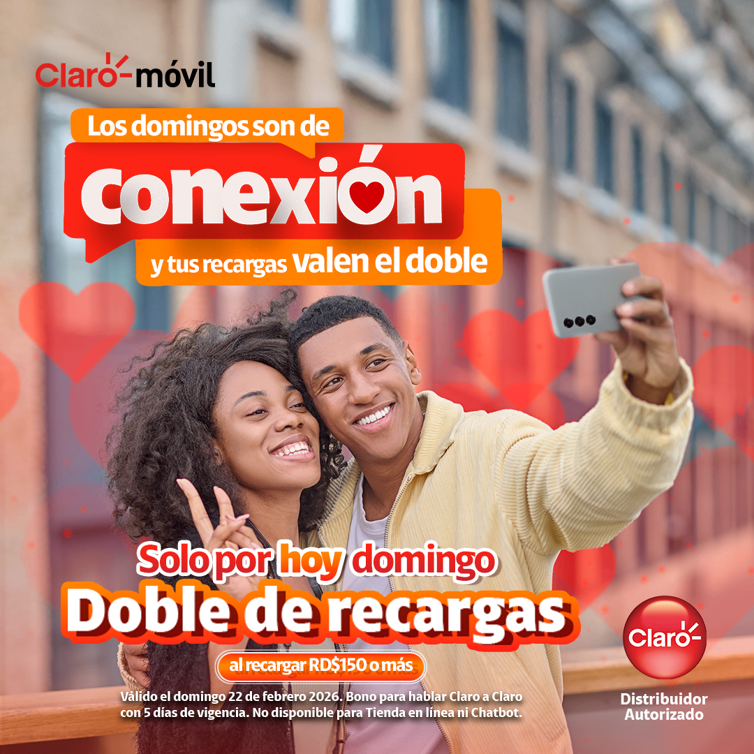 Esta oferta se aplica apenas a recargas feitas a partir de 22 de fevereiro de 2026, a partir de DOP$150,00.